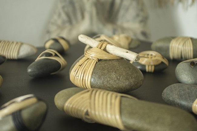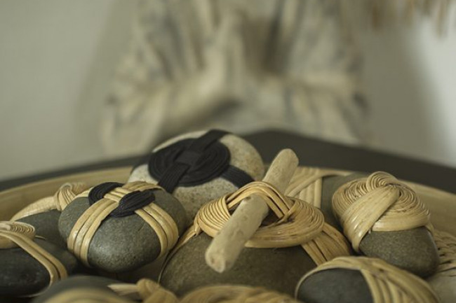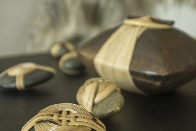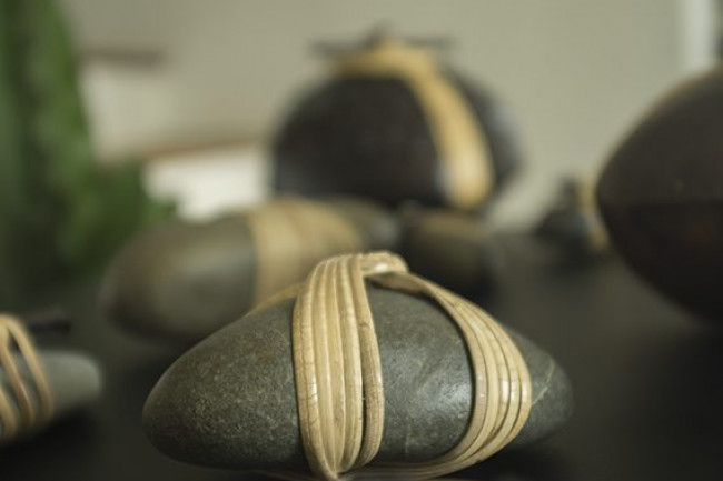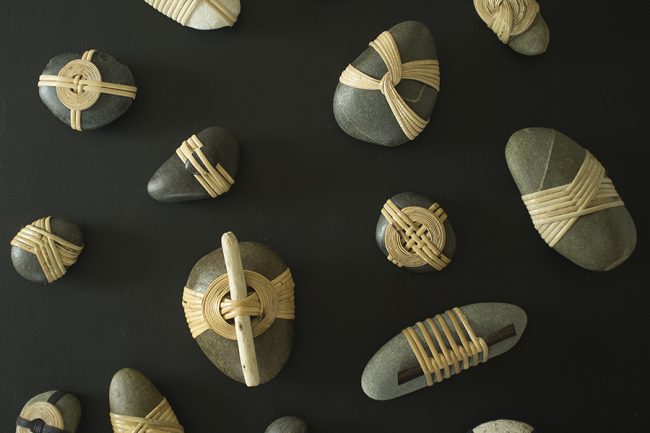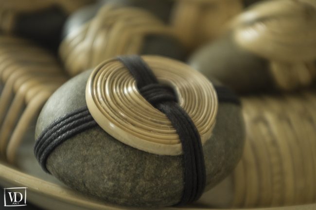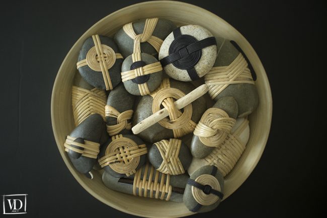Mon amour de l’Asie et notamment du Japon m’ont fait découvrir l’art des pierres enveloppées japonaise (rock wrapping). Ces enveloppements peuvent être extraordinairement compliqués ou d’une grande simplicité, mais la fusion résultante de la roche et la canne dégage un sentiment de paix, de calme et de tranquillité. Si vous souhaitez des pierres sur commande, n’hésitez pas à me contacter, je serai ravie de réaliser vos envies.